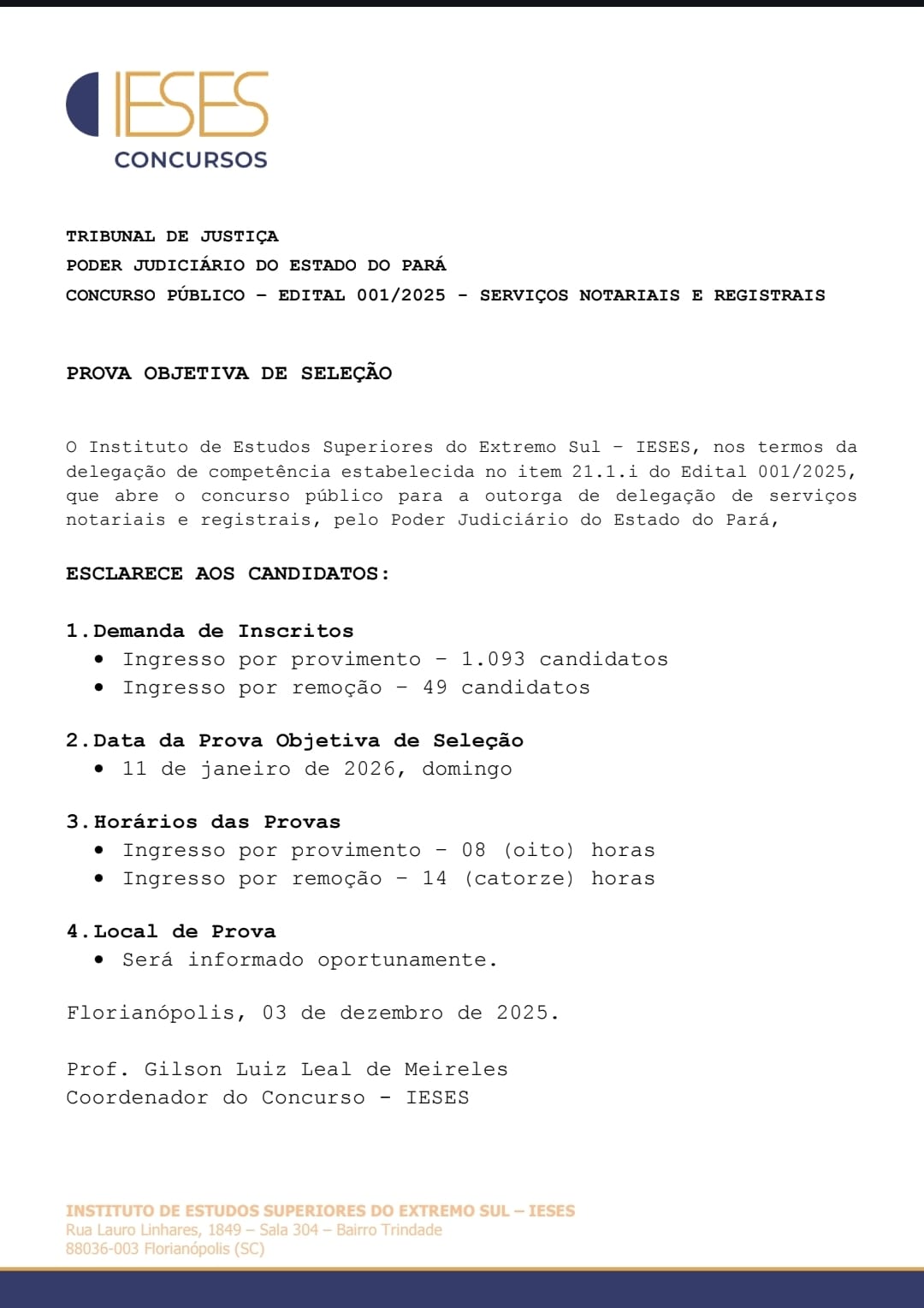 - Edital: TJ PA Cartório 2025 (atualizado com a 1ª retificação)