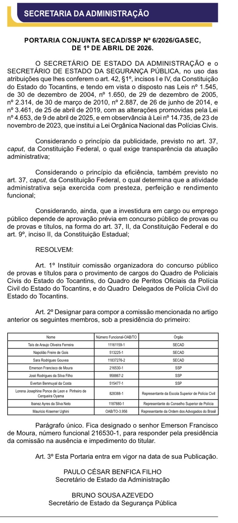A comissão responsável pelo concurso da Polícia Civil do Tocantins (PC TO) definiu o cronograma inicial para a contratação da banca organizadora do próximo certame, que prevê a oferta de 452 vagas, incluindo 69 oportunidades para o cargo de delegado de polícia.