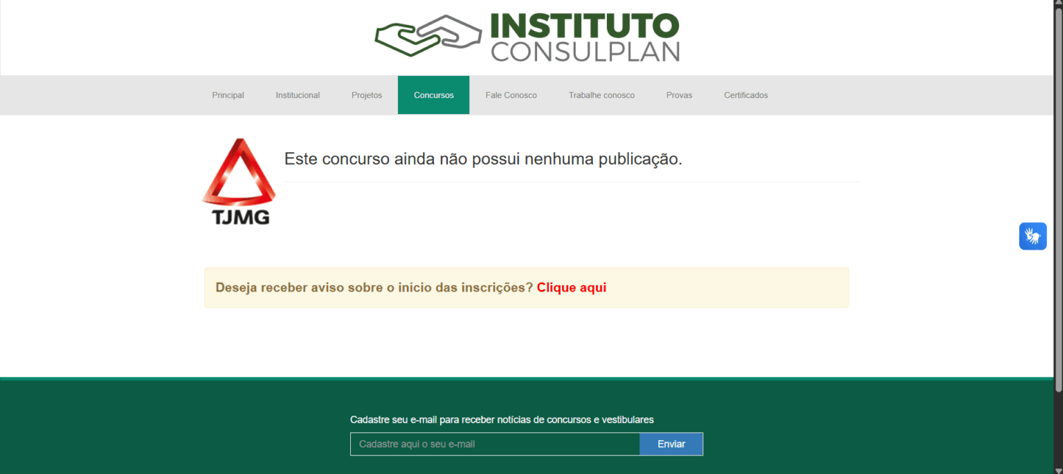 A página do concurso já está disponível no site da instituição, indicando que o lançamento do edital é iminente e deve ser publicado a qualquer momento.