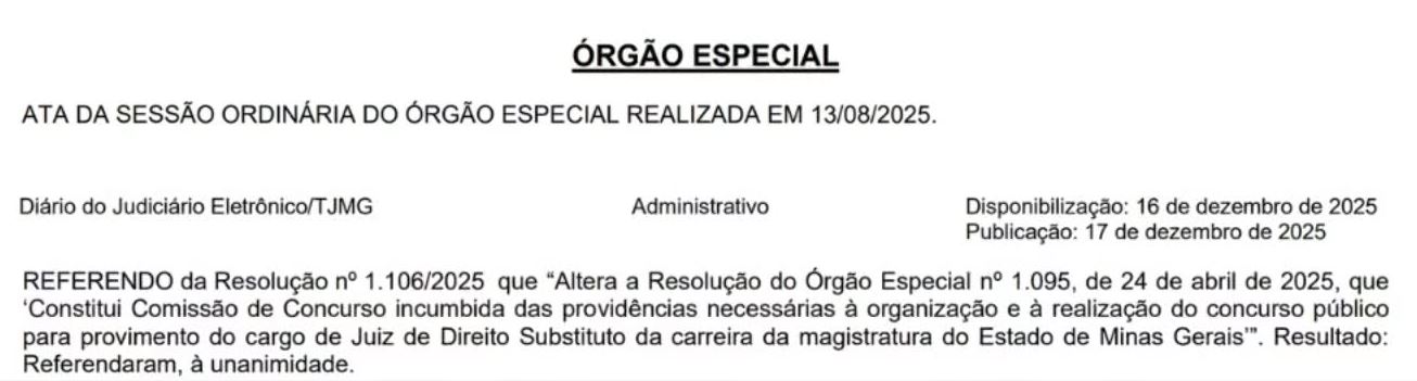 O novo concurso para a Magistratura de Minas Gerais segue avançando para publicação do edital.