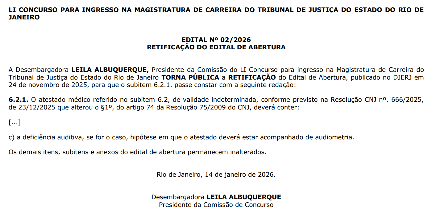 Ademais, o órgão compartilhou recentemente importante retificação sobre o atestado médico de deficiênte auditivo.