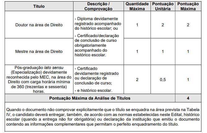 A pontuação obtida na Análise de Títulos será somada às notas da Prova Objetiva e da Prova Prático-Profissional, para fins de classificação final;