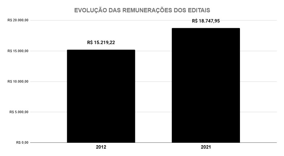 Já em 2021, a remuneração alcançou R$ 18.747,95, representando um crescimento aproximado de 23,2% em relação ao concurso anterior, embora com redução significativa no número de vagas, que caiu para 50, indicando maior seletividade.