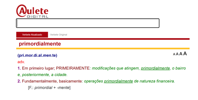 “Primordialmente”, por outro lado, significa “em primeiro lugar”, “prioritariamente”, o que indica prevalência, mas não exclusividade.