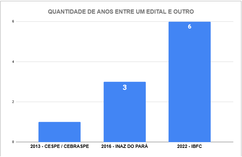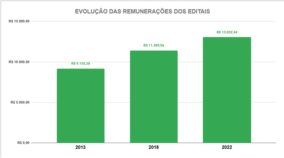 Entre o antepenúltimo edital, publicado em 2013, e o penúltimo, lançado em 2016, houve um intervalo de 3 anos. Desse para o último, em 2022, foram 6 anos.