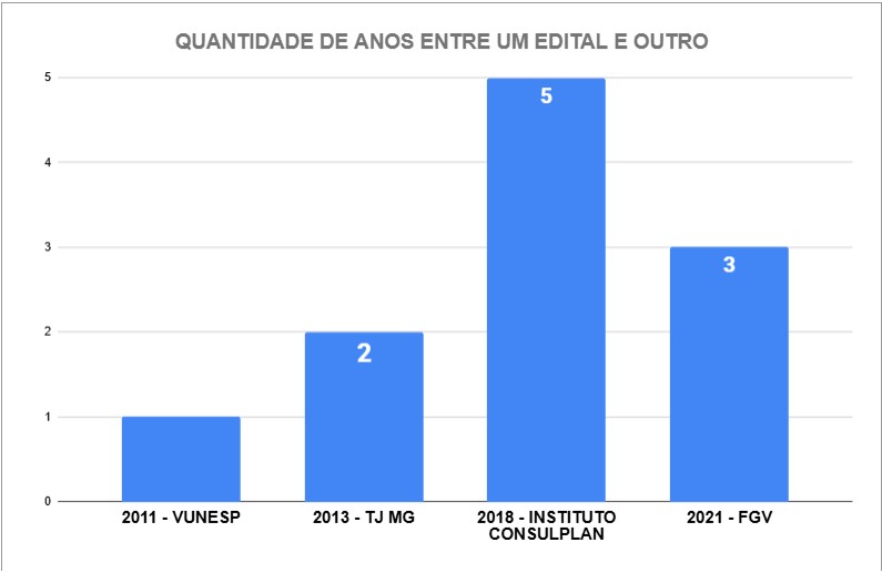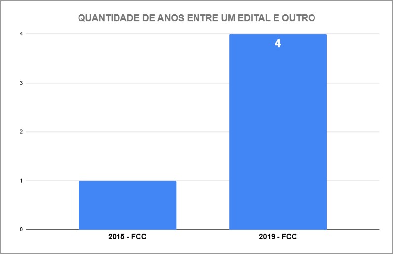 Veja a distância de publicação entre os editais ao longo dos últimos 10 anos.