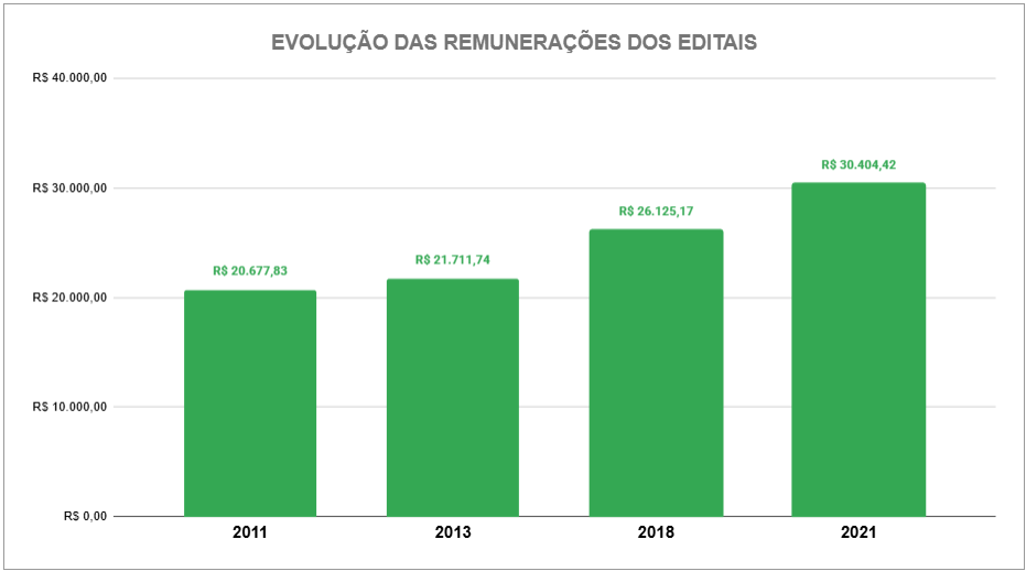 Últimas remunerações (de acordo com os editais) para o cargo de Juiz e Juíza dos concurso previstos
