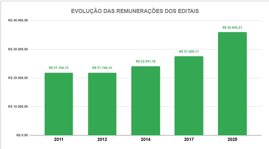 - Últimas remunerações (de acordo com os editais) para o cargo de Juiz e Juíza dos concurso previstos