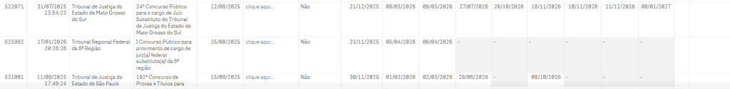 O Conselho Nacional de Justiça (CNJ) atualizou o painel oficial dos concursos da Magistratura com as datas das avaliações, e o Tribunal Regional Federal da 6ª Região (TRF 6) aplicará as provas escritas do certame para Juiz Federal nos dias 5 e 6 de abril, coincidindo com o domingo de Páscoa. Confira a atualização: