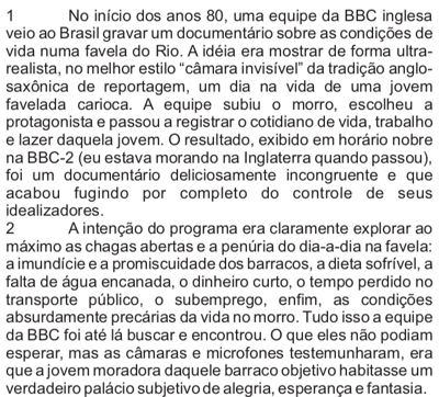 “A intenção do programa era claramente explorar ao máximo as chagas abertas e a penúria do dia-a-dia na favela” (2º parágrafo);