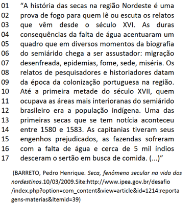 De acordo com a leitura do texto acima, assinale qual item NÃO demonstra uma consequência da falta de água: